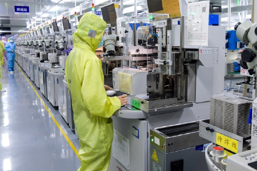 “瑞华光电车规级LED项目于2025年5月正式投产,截至目前,40条自动化产线开足马力、全面铺开,月生产灯珠数量高达5亿颗。”车间生产主管彭长明介绍说,近年来,随着国产新能源汽车的加速崛起,车企对汽车照明、车载显示、车载视听系统的多元化、个性化需求日益凸显。瑞华光电抢抓市场机遇,积极布局产业新赛道,塑造发展新优势。